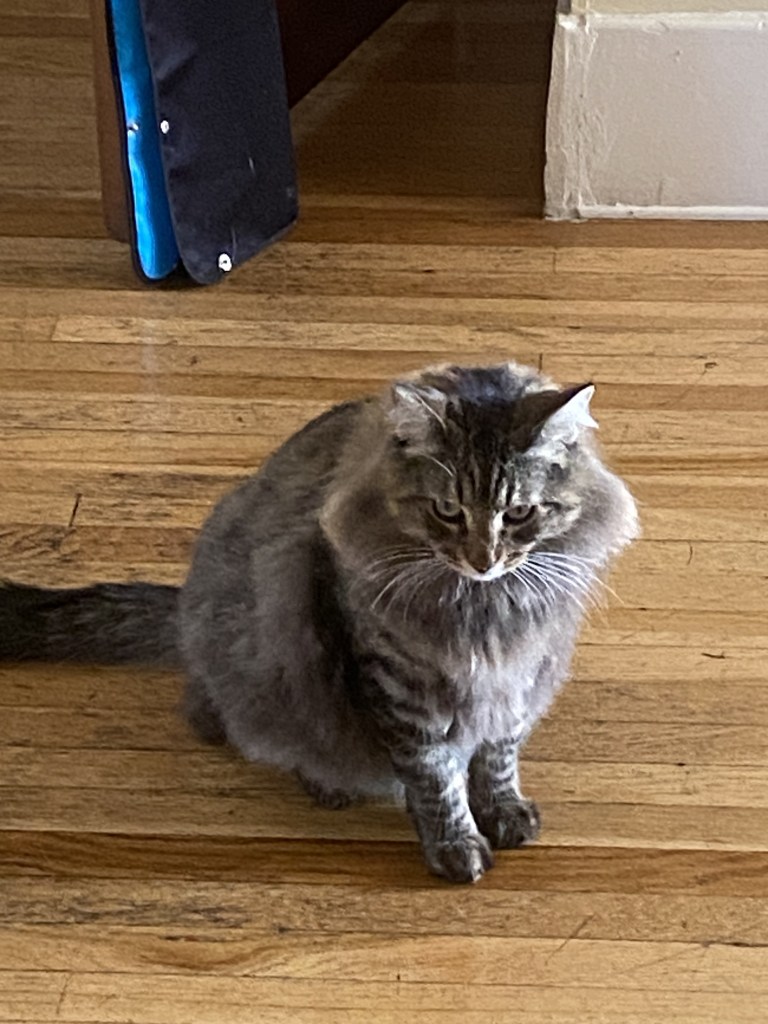 Bob and I recently adopted two young cats. They had been living outside for awhile but weren’t feral. They came as a pair because Chloe was attached to her brother Cisco and it would be difficult to separate them. So we brought home Chloe and Cisco.